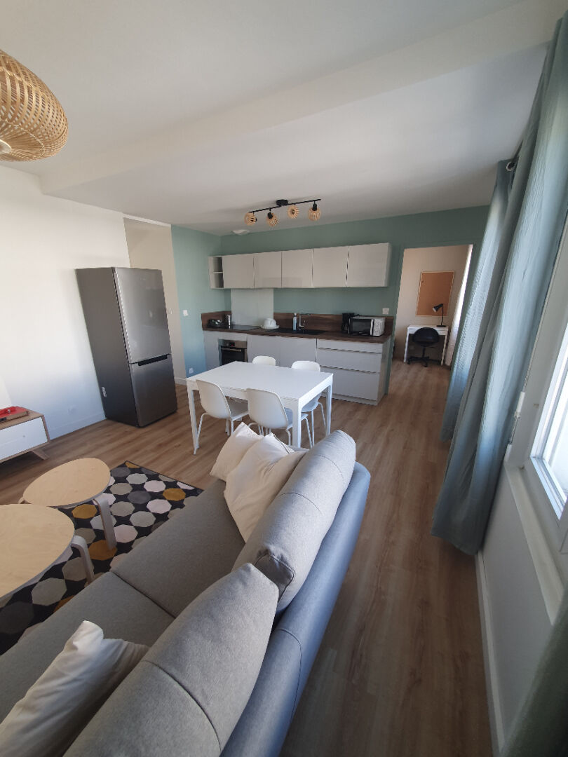 Très bel appartement T3 de 76 m² entièrement rénové situé au centre ville dans immeuble sécurisé avec ascenseur. Il comprend une entrée avec placard, un séjour avec balcon, une cuisine aménagée et équipée, un cellier, 2 chambres, une salle de bain, WC. Une place de parking privée vient compléter ce logement. Disponible le 27/04/2026